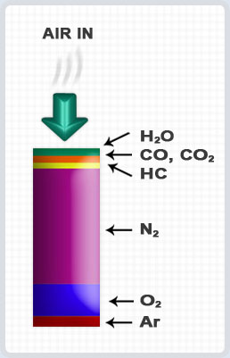 空气通过填满多微孔的柱体(床)时,各种气体会会按照多微孔对
