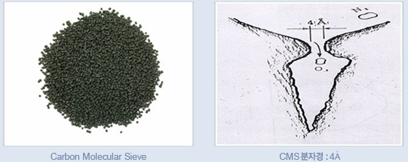 炭分子筛是采用椰子树皮制作的一种具有4Å大小多精密气孔的结晶结构体。氧气分子的直径是3.8Å,氮气分子的直径约为4.2Å,产品即是利用因直径差异短时间内氧气会先被吸附这一原理。为生产高纯度的氮气应选择能维持一定的压缩强度且气孔均匀的产品。